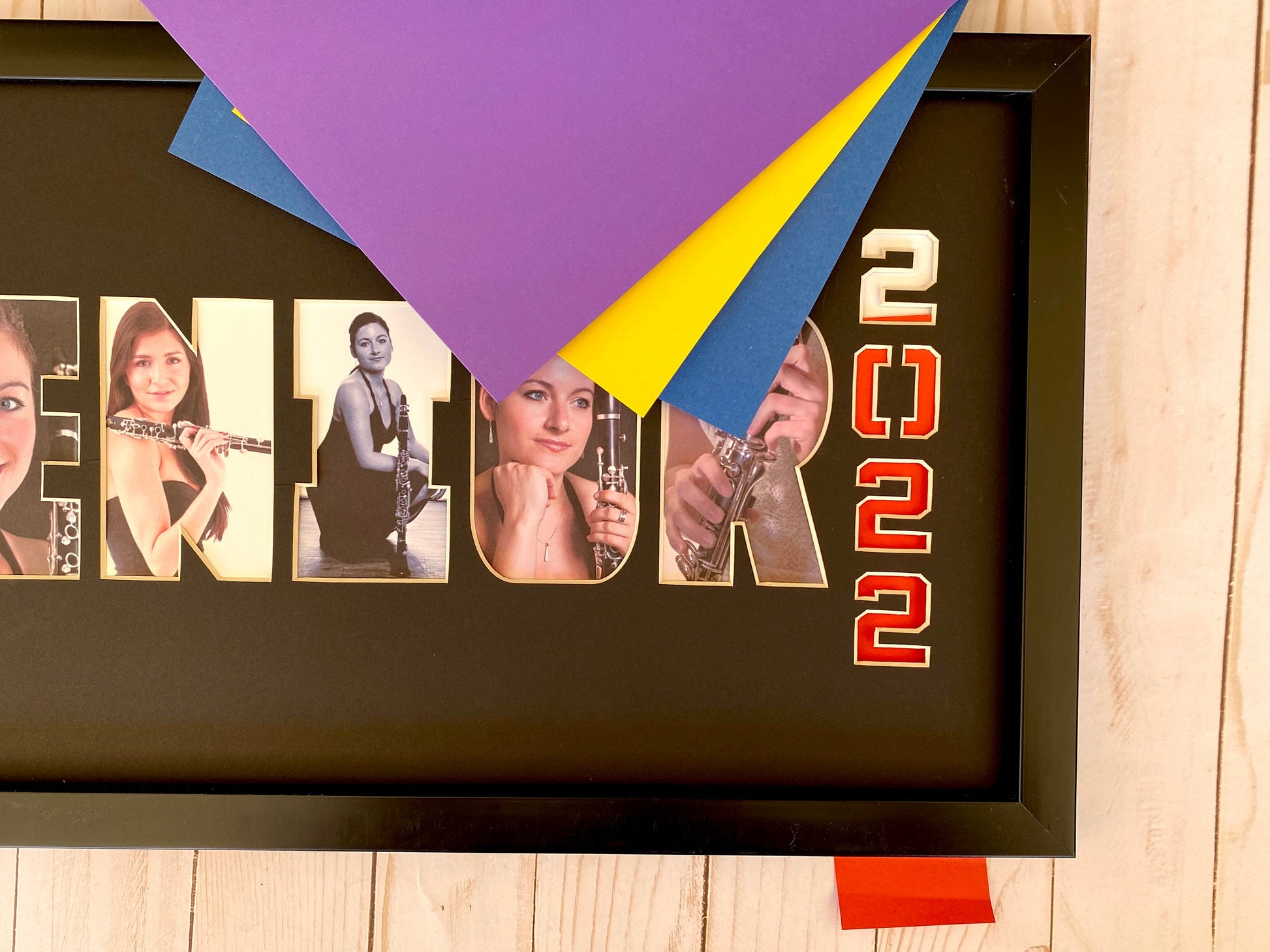 - Slide a piece of colored paper behind the 2022 to match your student's school colors