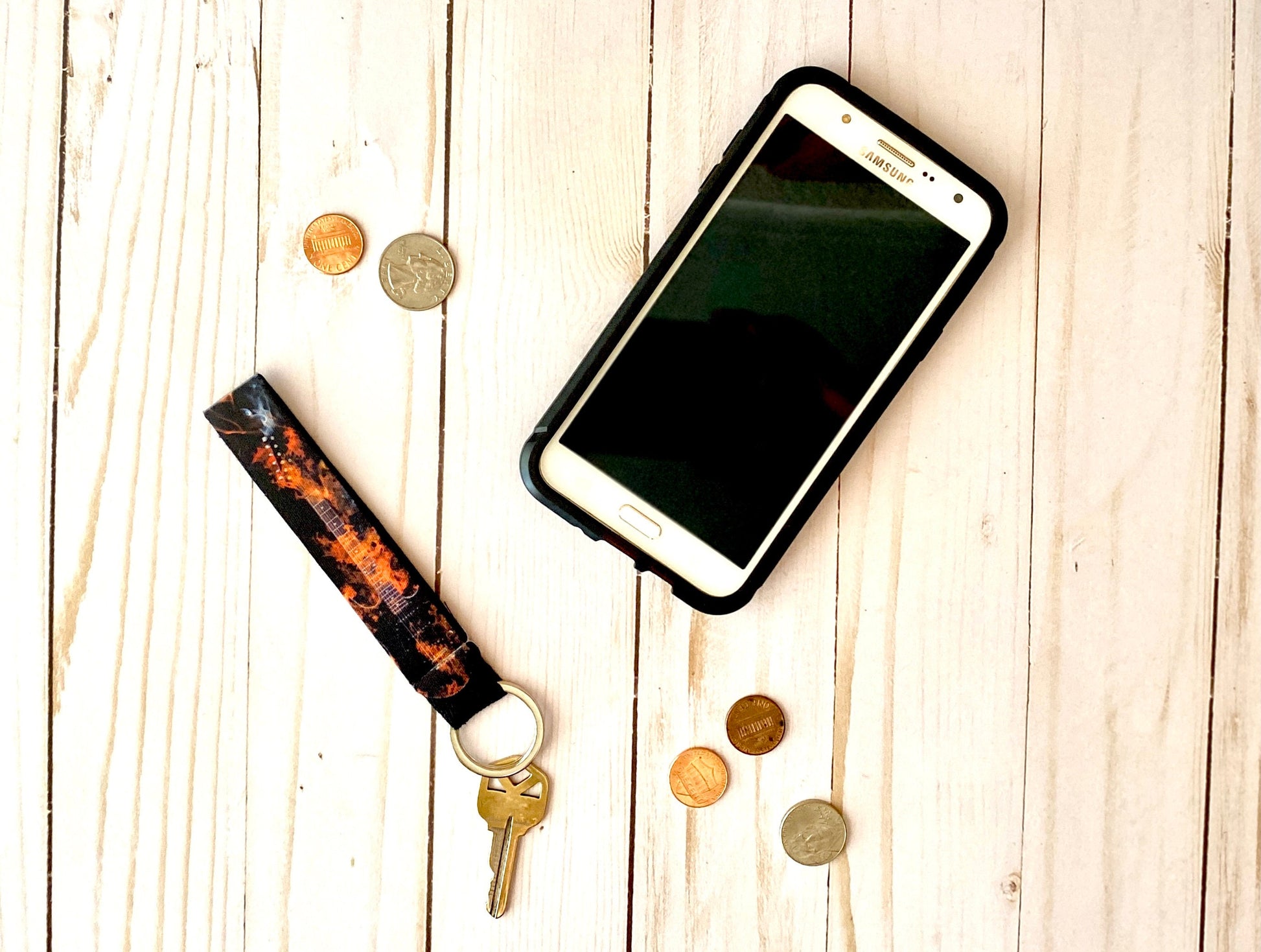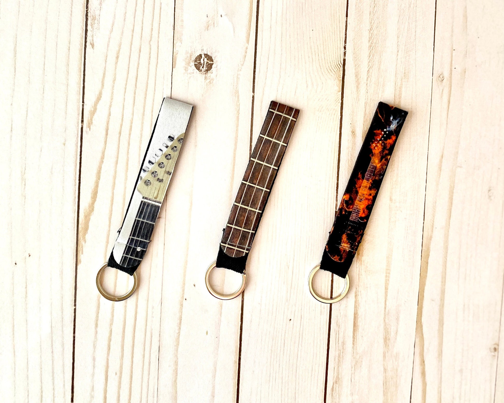 Electric Guitar Photo Wristlet Keychain, Strap Lanyard, Guitarist Musician Key Accessories, Music Student Teacher, Band Gift for Him for Her