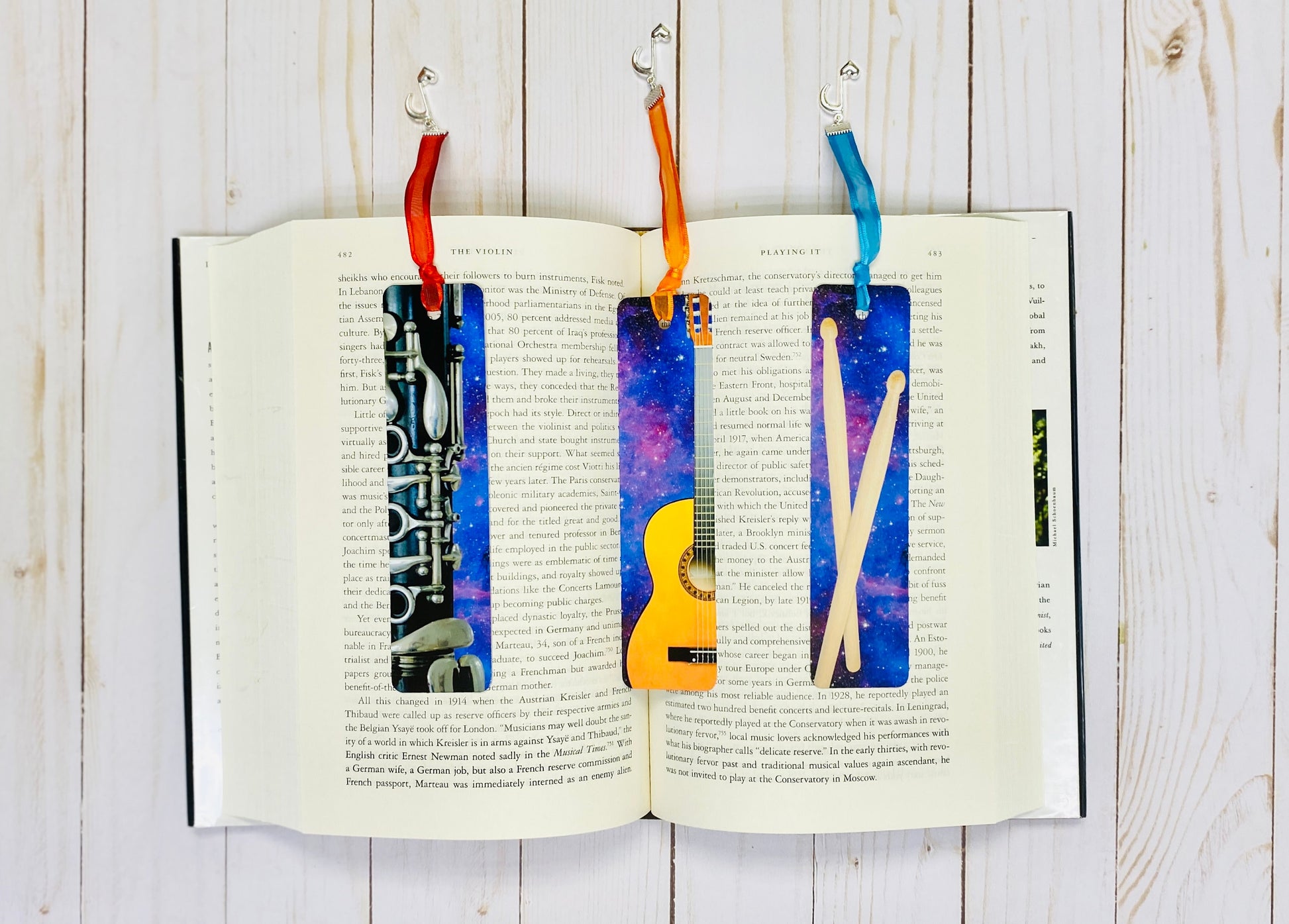 These gorgeous bookmarks feature your favorite musical instruments up against the beauty of the celestial heavens.