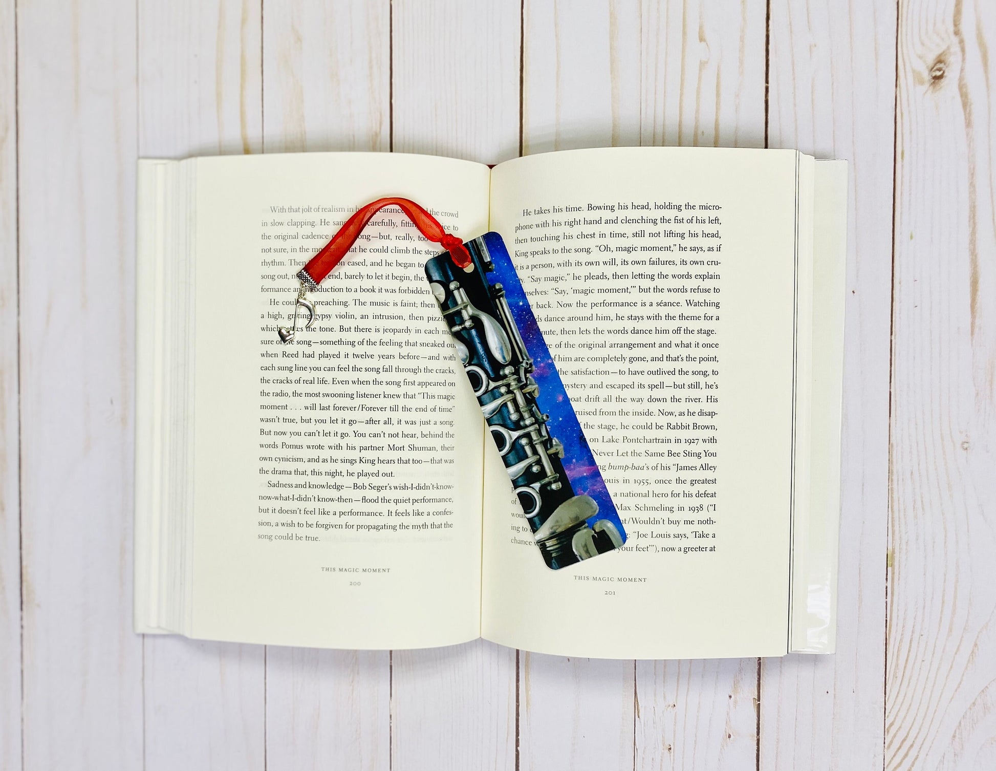 Metal Clarinet Bookmark with Purple Galaxy Design, graduation, gift for musician, music student teacher gift, gift for clarinet player