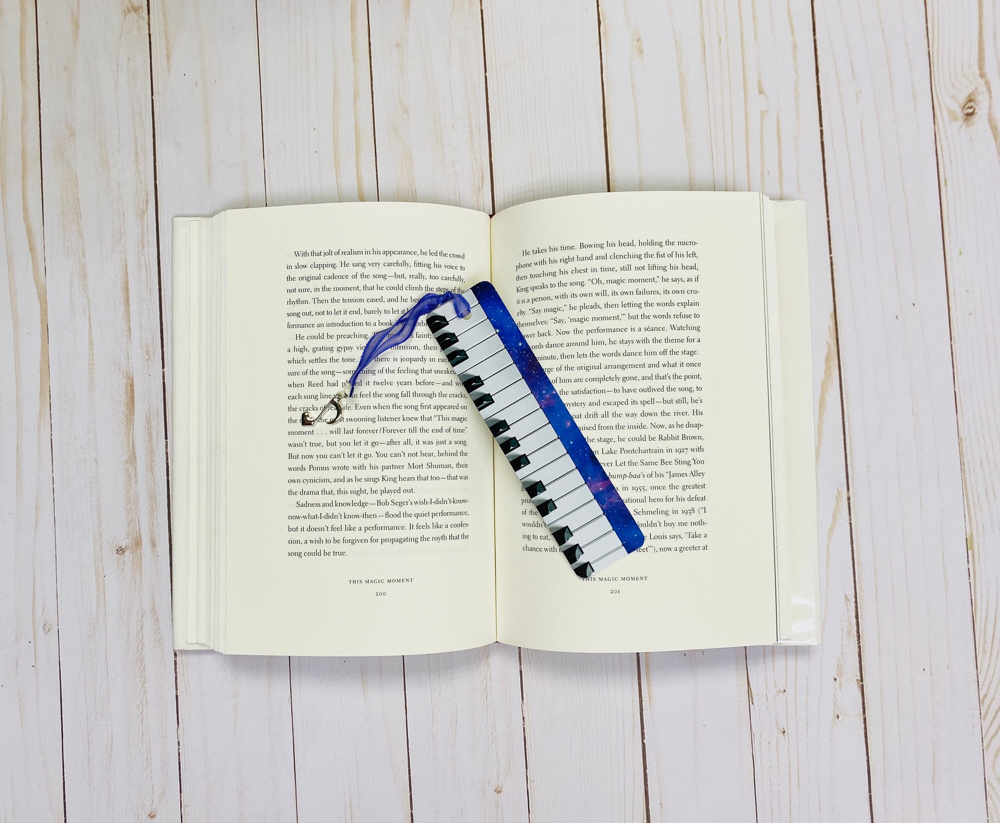 Metal Piano Bookmark with Purple Galaxy Design, Graduation, gift for musician, College music student teacher gift, music nerd, for pianist