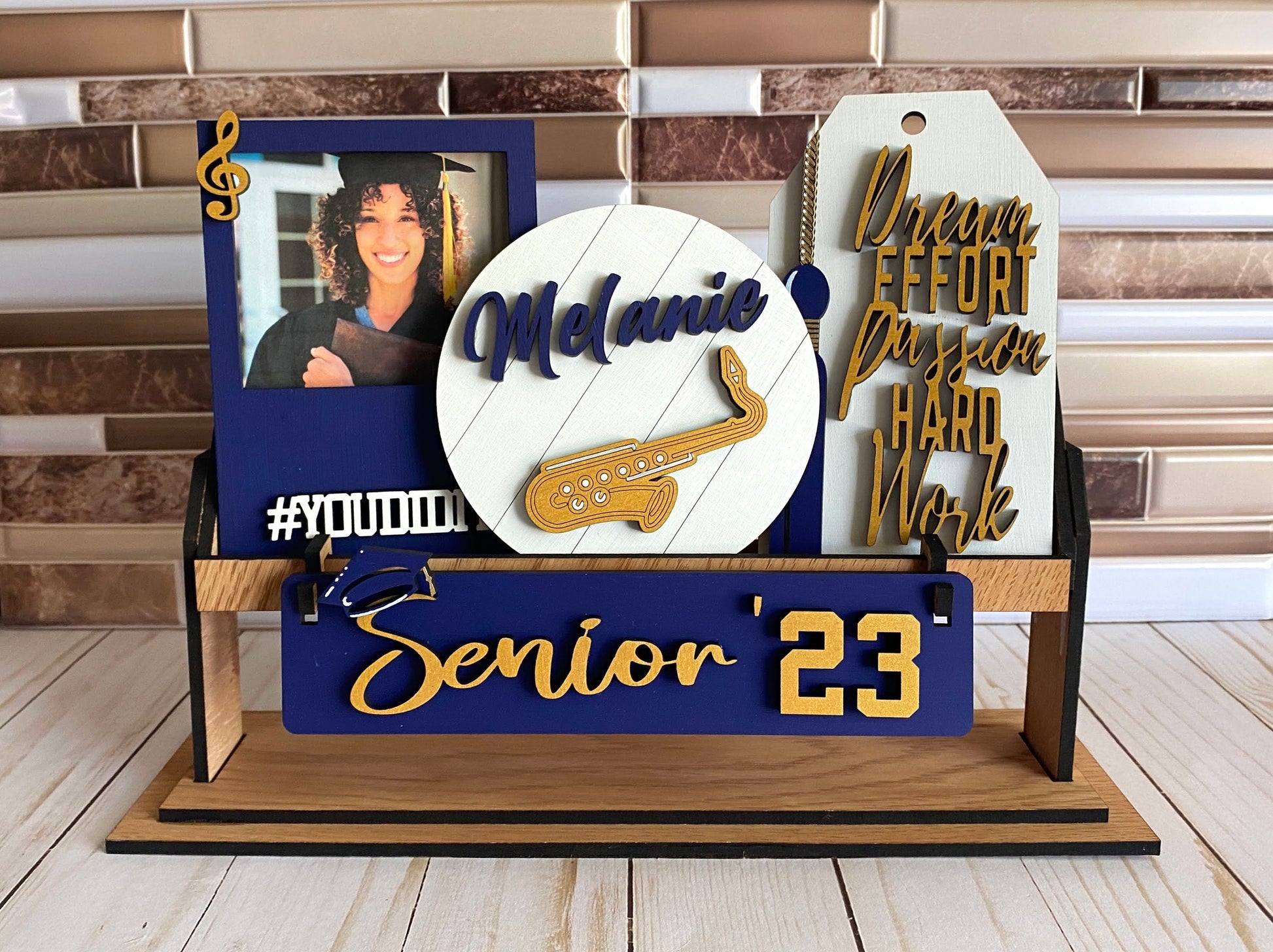 Add your student’s name and instrument to make a special, one-of-a-kind display in your home. Customize further with school colors. Makes a lovely grad gift for the student moving on to the next chapter in their life.