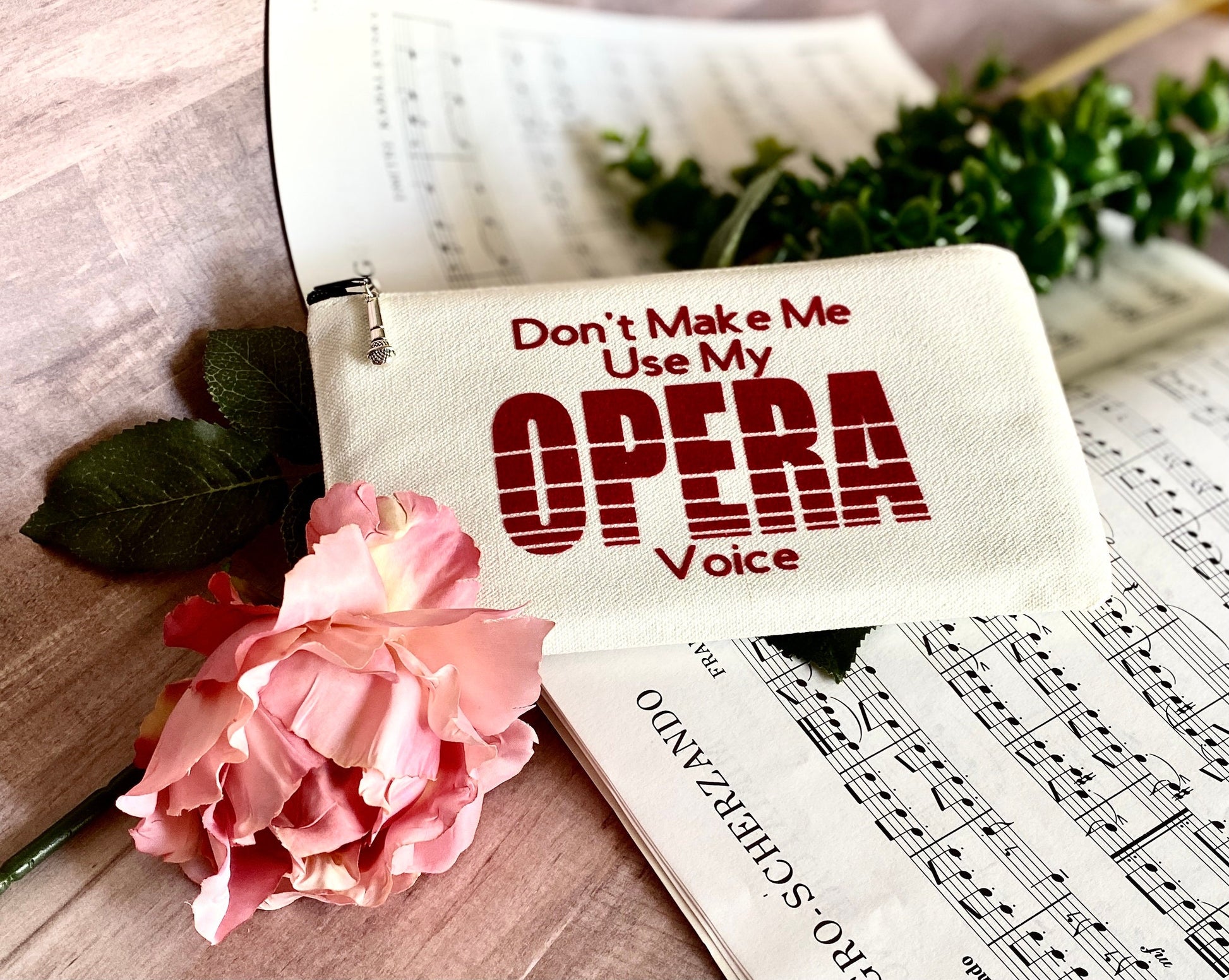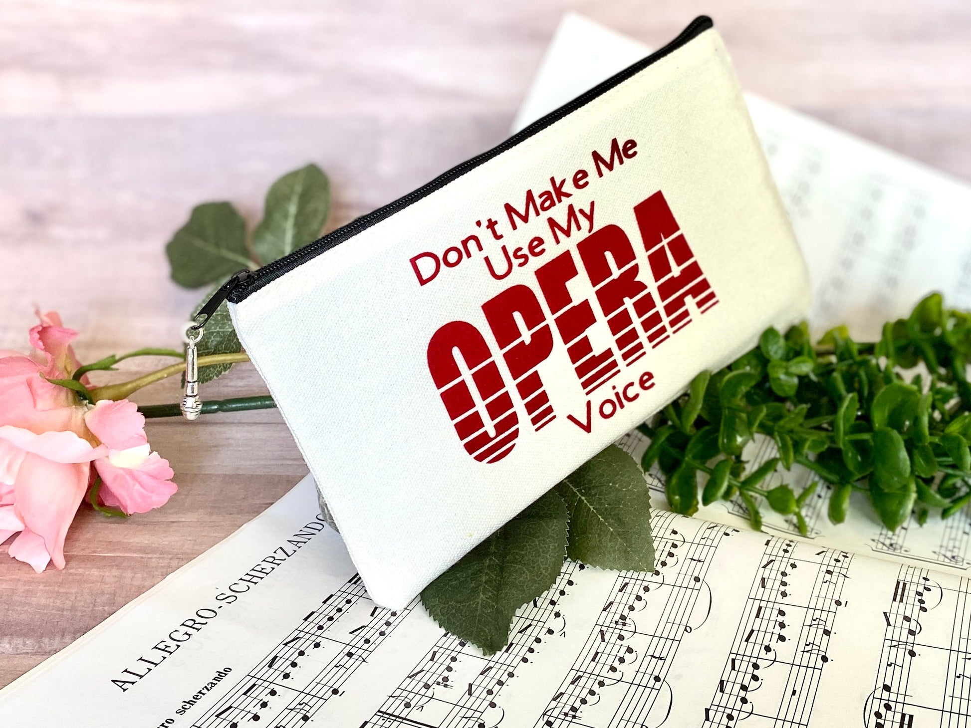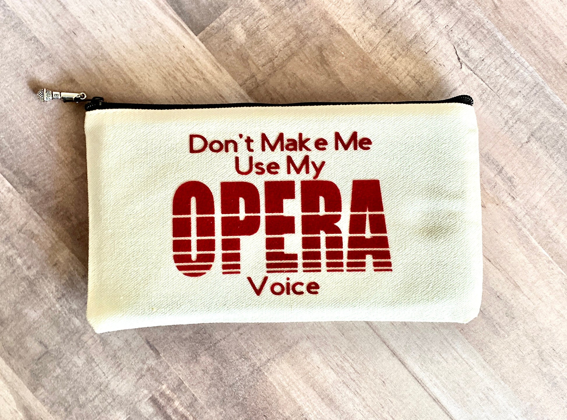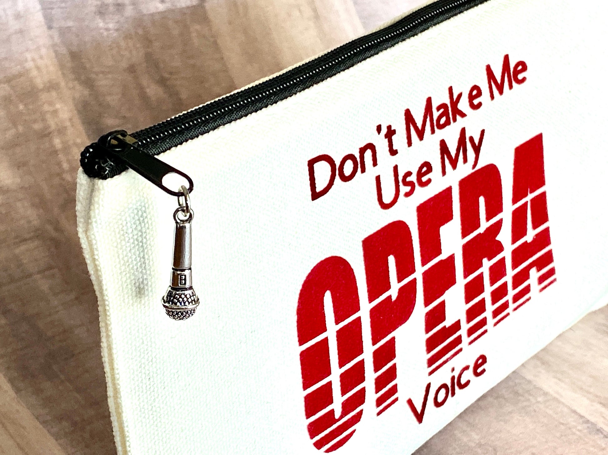 Singer Zipper Pouch with Charm, Don't Make me use my Opera Voice, Choral Singer Gift, Funny Musician Joke, back to school college student